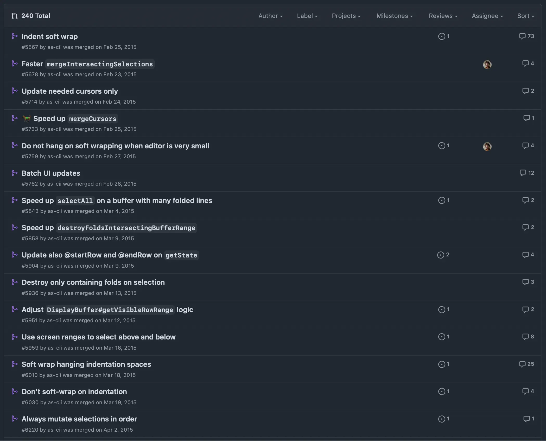 This approach is part of our DNA—Zed cofounder as-cii (Antonio Scandurra) was originally hired to the Atom team after his consistent quality pull request submissions caught the team's attention!