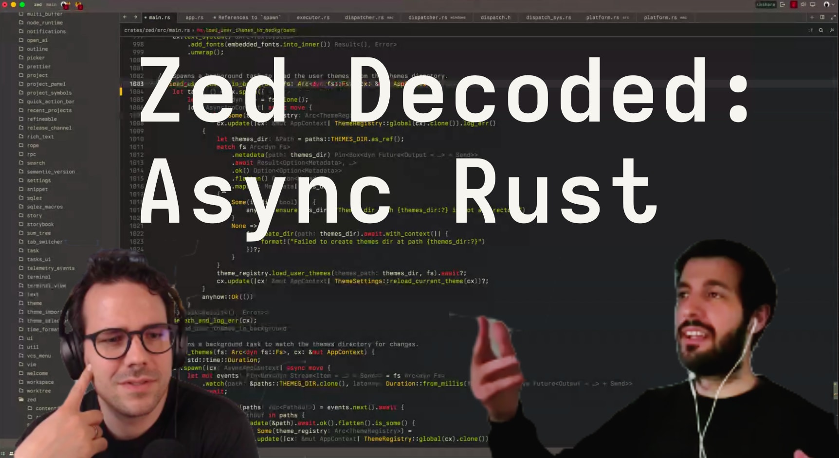 The first topic that was on my list: async Rust and how it's used in Zed. Over the past few months I've become quite fascinated with async Rust — Zed's the first codebase I've worked in that uses it — so I decided to sit down and ask Antonio, one of Zed's co-founders, about how we use async Rust in Zed.