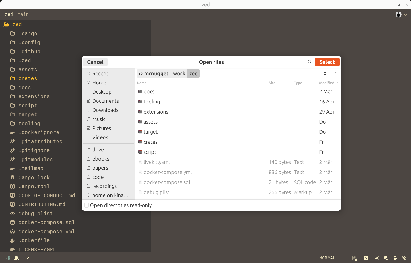Yup, that's a native file dialog, but we don't use GTK in Zed and that clearly is GTK — so, how does that work? You'll find the answer in the companion video in which Mikayla and I dive deeper into this and also touch on the question of whether or not we should use GTK or Qt or something else (spoiler: it's complicated).